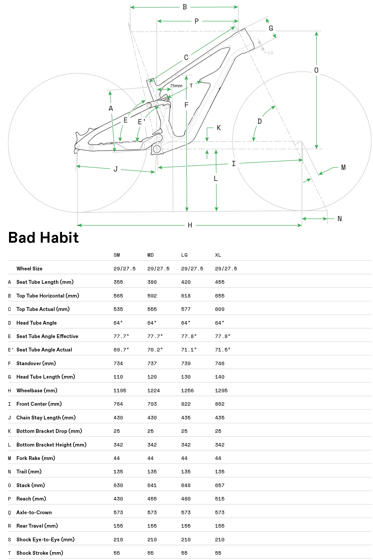 RámBad Habit, high-strength carbon construction, 155mm travel, StashPort, Proportional Response Suspension and Geo, 55mm chainline, ISCG05, 73mm BSA MTB Wide BB, 1.5" headtube (compatible with thru headset or external cable routing and Acros angle adjust headsets), DirectLine tube-in-tube cable routing, UDH hanger, 200mm native post mount brake