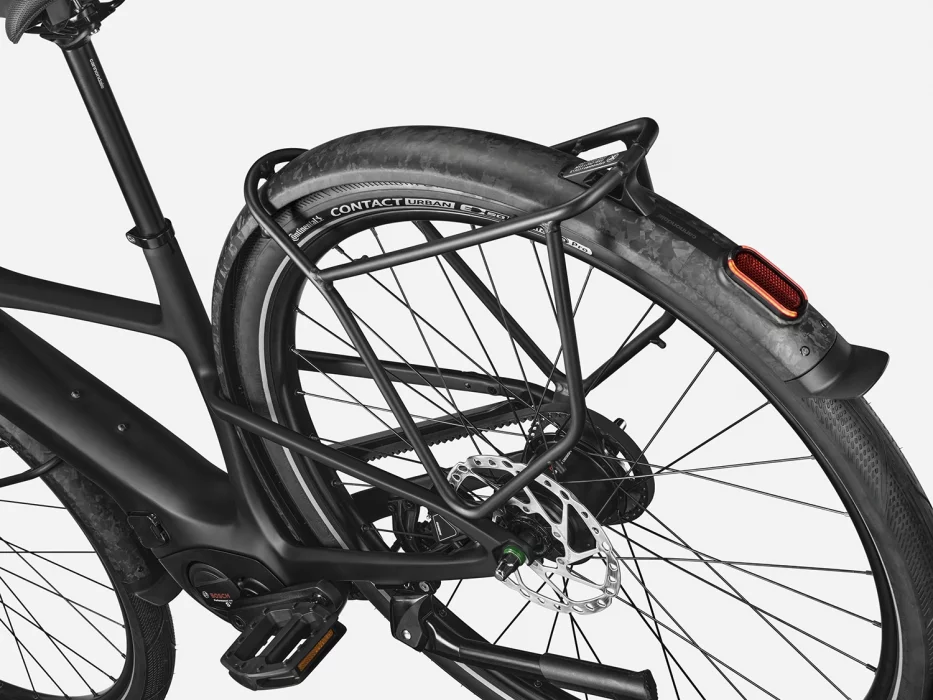 Integrovaný nosič je lehký, nenápadný a pevný. S nosností 18 kg a zadní polohou, která eliminuje kontakt s patou/taškou, spojuje styl s funkčností.